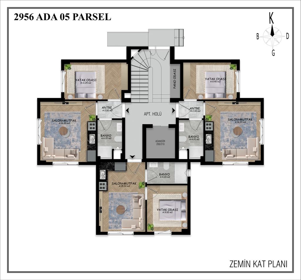 8 Adet 1+1 Zemin Kat - 15 Adet 1+1 Normal Kat - 30 Adet 2+1 Normal Kat - Toplam 54 Daire